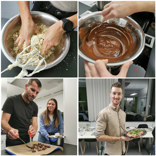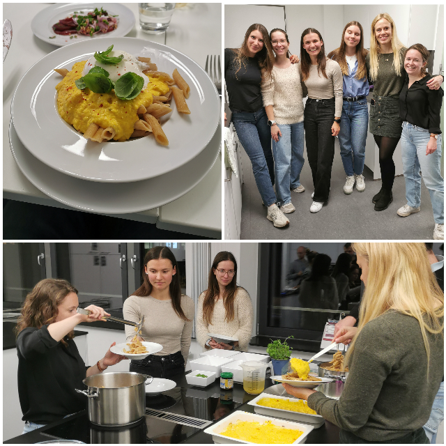 Unter Anleitung der AOK Mitarbeitenden, wurden von uns mehrere leckere Gerichte zubereitet. Auf dem Programm standen einige Vorspeisen, ein Hauptgericht aus Pasta, Kürbis und Feta Käse, sowie mehrere Nachspeisen. Alle Gerichte durften wir danach natürlich auch selbst genießen und wir fanden alles mega lecker. Da wird bestimmt das Eine oder Andere zu Hause mit auf den Speiseplan kommen.