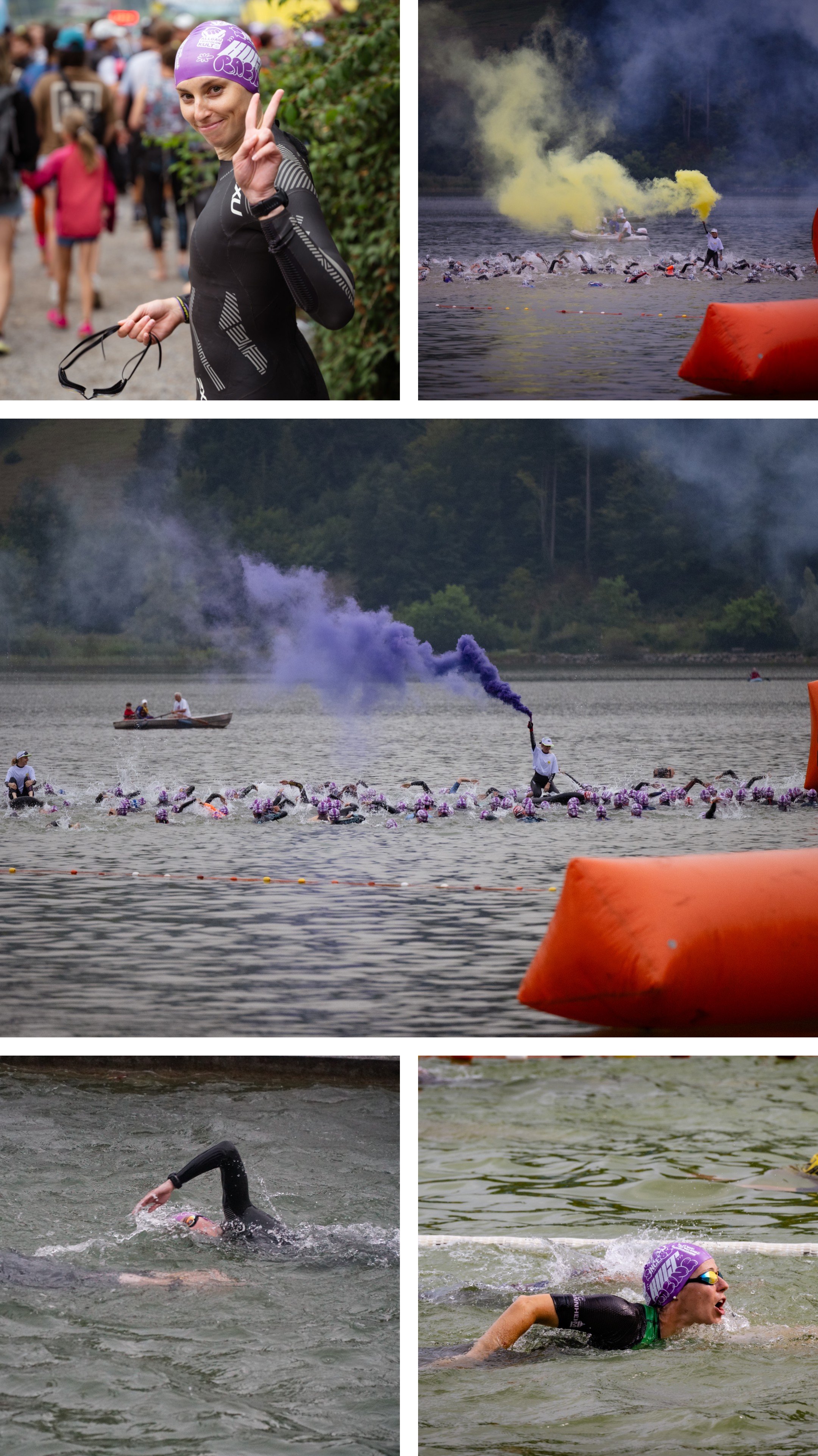 Etwa zur selben Zeit machten sich auch Anna und Carmen auf den Weg der olympischen Distanz. Hier starteten die Frauen in der letzten Welle. Nach ordentlichem Schwimmen kamen beide gut aus dem Wasser und konnten sich nun auch der hügeligen Radstrecke widmen und zunächst den Kalvarienberg erklimmen.